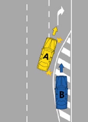 8.You are driving Vehicle A. When CAN NOT you cross the single continuous line?