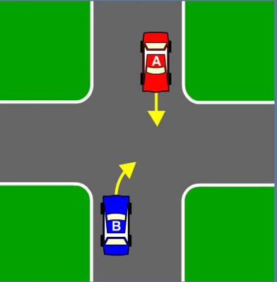 6.如图你驾驶着汽车A,现在左转是安全的,所以你
